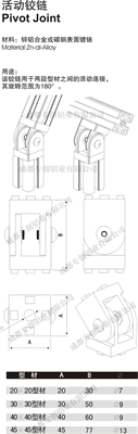 該鉸鏈用于兩段型材之間的活動連接,其旋轉(zhuǎn)范圍為180度。