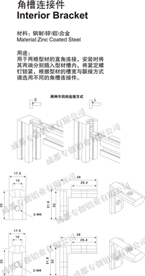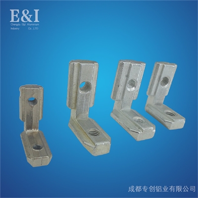 用于兩根型材的直角連接,安裝時將其兩端分別插入型材槽內,將緊定螺釘鎖緊,根據型材的槽寬與聯接方式請選用不同的角槽連接件。